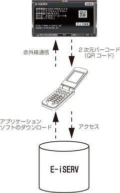 携帯電話を使ってE-iSERV(ECLIPSE information SERVICE)にアクセスすると、ケータイリンク機能のアプリケーションソフトをダウンロードすることができます。ダウンロードした機能は、赤外線通信を使って本機に読み込むことができます。ダウンロードされるケータイリンク機能は以下です。