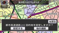 )にタッチしたとき、高速道路や橋、トンネルなどの付近では、目的地を設定する道路の種類を選ぶ画面が表示されることがあります。
