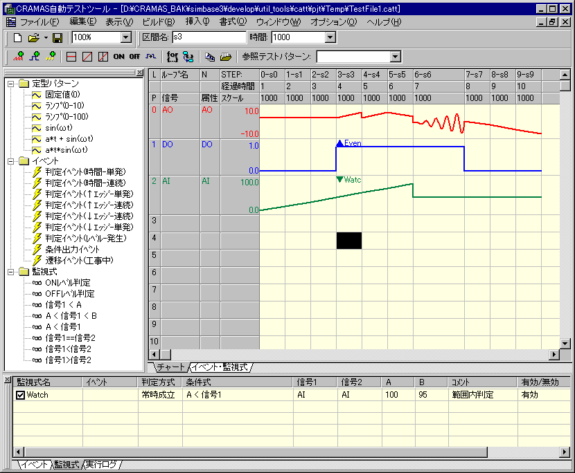 任意のテストパターンをGUI上でグラフィカルなチャートとして作成できます