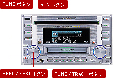 | FUNC →TUNE /TRACKボタンを回して「Clock Adjust」を選択 →TUNE/TRACKボタンを押す→SEEK/FASTを押して調整項目を選択→TUNE/TRACKボタンを回して調整