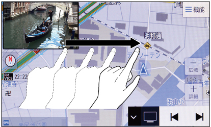 ピクチャーインピクチャーにタッチしたまま指を真横(左右)にスライドする。