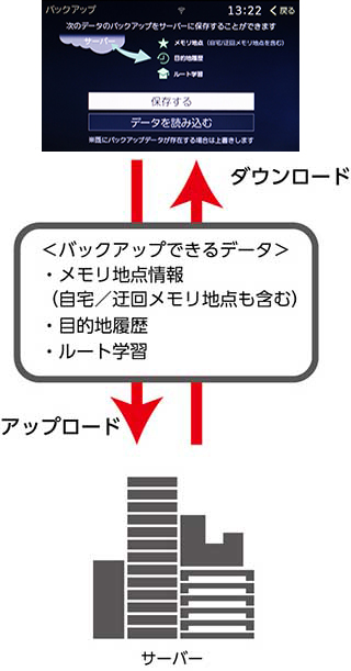 メモリ地点などのドライブ情報をサーバーへアップロードし、データをバックアップすることができます。