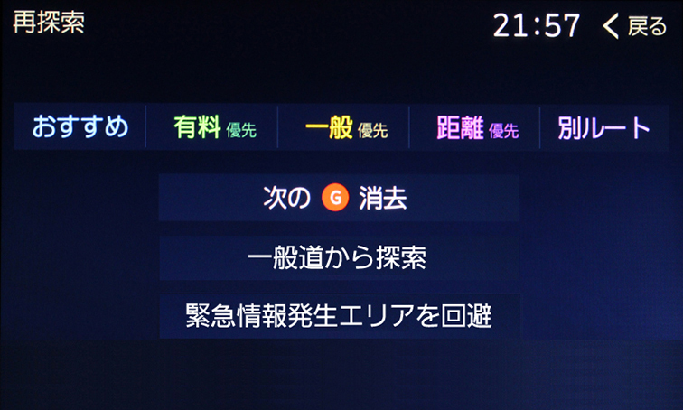 現在地から次の目的地※1の間で、現在選ばれているルートとは別のルートを探索