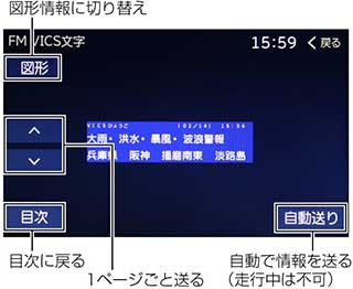 緊急情報を受信した場合は、他の情報より優先して割込表示されます。割込んだ情報は