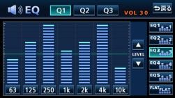 あらかじめ設定されているイコライザカーブを調整し、記憶させることができます。本機は、7バンドのパラメトリックイコライザで、中心周波数や周波数レベル、Qカーブ(帯域幅)を調整することができます。