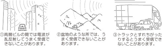 • FM多重は、放送局から広く電波の届く範囲の車両に情報の提供を行います。