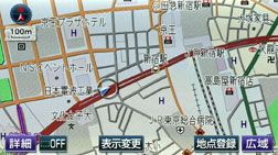 1. ヘディングアップ表示のとき、車の進行方向の地図を広く表示させる。