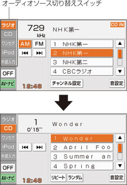 オーディオ操作画面のオーディオソース切り替えスイッチにタッチします。
