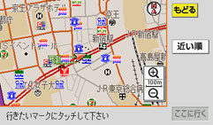 から半径約10km以内にある施設のマークを最大200件表示することができます。