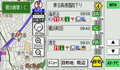 目的地案内中は高速道路走行中、自動的に画面を左右に二分割して右側に高速略図画面を表示します。(都市高速、有料道路含む)