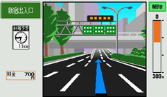 都市高速のIC入口などでは、立体的な案内画面が表示されます。