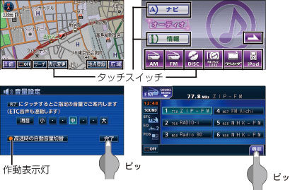画面保護のため、タッチスイッチは指で軽くタッチしてください。