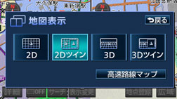 左右異なる縮尺・ヘディングアップ表示とノースアップ表示・施設表示のONとOFF・3D表示のONとOFFに分割して表示できます。