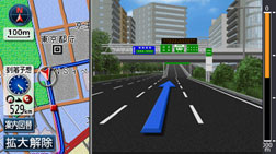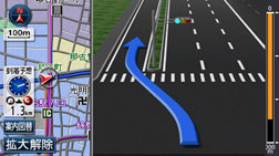 立体交差点情報のある交差点では、立体的な案内画面を表示させることができます。