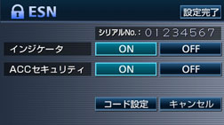 ACCセキュリティを[ON]に設定していた場合は、ESNのロックを解除しても、ACCセキュリティの設定は[ON]のまま保持されますが、ESNの設定をキャンセルした場合は、ACCセキュリティの設定もキャンセルされます。