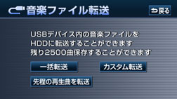 • USBメモリに収録されている音楽ファイルの名称文字数が、画面に表示できる文字数より長い場合、その音楽ファイルは転送することができません。