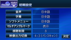 初期設定画面で設定を変更した後、 決定にタッチせずに、画面が切り替わるスイッチ(AV)を押すとDVDの再生は停止した状態になります。