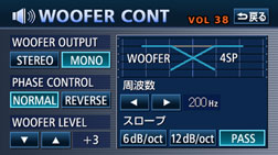 1. WOOFER OUTPUTの STEREO 、またはに MONO タッチします。