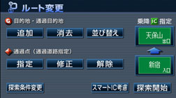 1. 通過点(通過道路指定)の 解除 にタッチします。