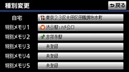 メモリ地点の種別(自宅・特別メモリ)を変更する