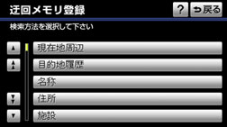 地図の呼び出し方法を選び、迂回メモリ地点を登録する地点の地図を表示させます。