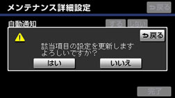 メンテナンスメニュー画面メンテナンスメニュー画面で、設定を更新する項目にタッチします。