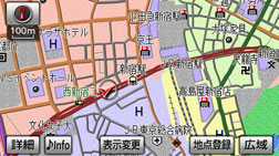 画面の中心に表示される自車マーク 自車位置 を、中心からずれて表示させることにより、進行方向の地図を広く表示させることができます。