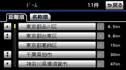 • 入力中に検索先の候補が5件以下になり、約10秒以上操作しなかったときは、自動的にその時点で入力した文字から検索された施設名称の全国リスト画面が表示されます。