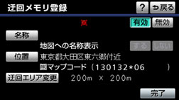 登録した迂回メモリ地点は、付近の住所およびマップコードが表示されます。