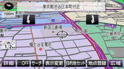 • バーチャタウンマップの視点(角度と高さ)が最大(高)のとき、 広域 にタッチすると、バーチャタウンマップを解除することができます。