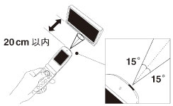 通信の規格上、双方向の通信が必要なため、近づけて操作する必要があります。操作する時は携帯電話と本機の受光部をまっすぐ近づけて送信し、通信終了までそのままお待ちください。