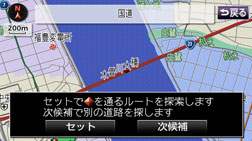 表示されている地図に道路情報が少ないときは、 次候補 にタッチしても、道路が選択できないことがあります。