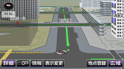 ルート案内中に複雑に入り組んだ交差点をリアルに表示することができます。