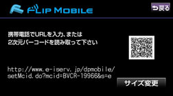 携帯電話を使って2次元バーコードを読み取ると、再生中のアルバムに関連する携帯サイト(FLIP MOBILE)へ接続することができます。