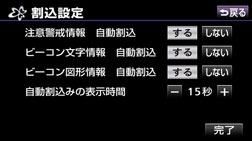 • 再表示した割り込み情報画面は自動的に地図画面にはもどりません。