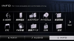 • 情報メニュー画面が表示されていないときは、 INFO にタッチします。