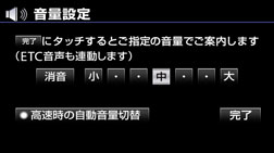 1. ナビメニュー画面で、 音量設定 にタッチします。