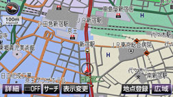 • 車の進行方向に関係なく、つねに北が上になるように地図が表示されます。