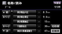 • 入力中に検索先の候補が5件以下になり、約10秒以上操作しなかったときは、自動的にその時点で入力した文字から検索された施設名称の全国リスト画面が表示されます。