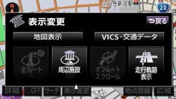 バーチャタウンマップ「→ バーチャタウンマップを表示する」、または高速路線マップ「→ 高速路線マップ」を表示させているときは、走行軌跡を表示することはできません。