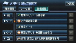 • 種別順 にタッチすると、自宅、特別メモリ地点、メモリ地点の順に並びかわります。