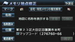 登録したメモリ地点は、メモリ地点修正画面から種別を変更したり、マーク、名称、名称読みなどを修正、入力することができます。