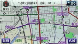 日時、曜日に応じて走行した道路の交通状況を学習し、学習結果を地図上に表示することができます。