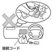 • ポータブルオーディオや接続コードを、運転の邪魔にならない場所に避ける、または邪魔にならない場所で仮固定するなどしてください。