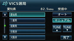 VICS情報を提供しているFM放送局を選ぶことができます。