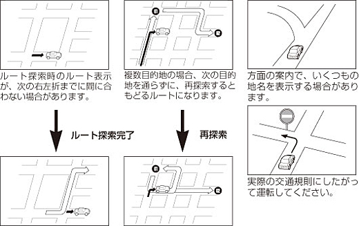 離島や周囲に案内可能な道路がないところが現在地・目的地・通過道路として設定されている場合に、ルートが探索されないことがあります。