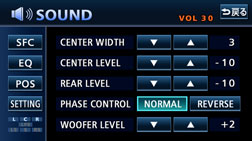 乗車人数や乗車位置に合わせて音像定位を切り替えることができます。また、前後、左右の音量バランスを調整し、届きにくいスピーカーからの音を強調することができます。