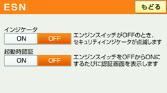ESN作動中にセキュリティインジケータが点滅するよう設定したり、エンジンスイッチをOFFにするたびに本機をロックするよう設定することもできます。