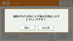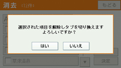 消去する地点を選択した状態で別のタブへ切替えた場合、次の画面が表示されます。 にタッチすると、選択した項目が解除されます。