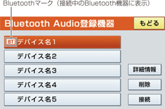 通常は、最後に登録したBluetooth機器が使用する機器として選択されますが、登録している別の機器を選択することができます。
